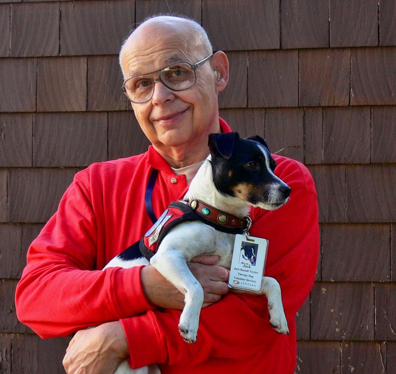 About eight years ago I adopted a Jack Russell Terrier from the Norfolk animal shelter. (My previous JRT, KC, had died at the ripe old age of 16 about two years prior to this). My new dog, Jack, seemed to be exceptionally calm for a JRT, so I decided to see if he could become a therapy dog. ( I had been doing volunteer work at Norfolk Sentara General Hospital and noted two therapy dogs at the spring awards banquet. I said to my wife, "Jack is going to come to this banquet next year". She naturally scoffed at this idea.)