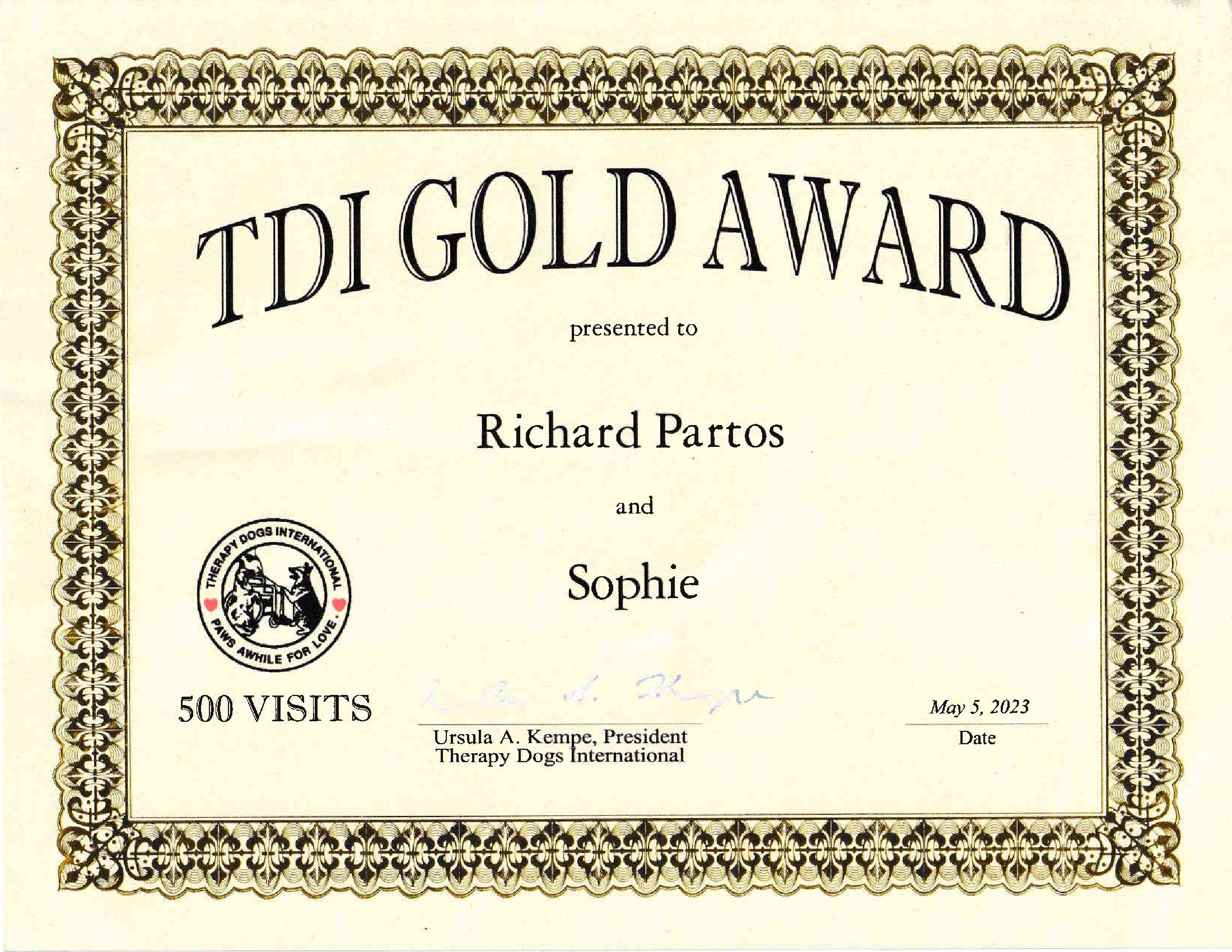 General Hospital. July, 2023 Sophie has now completed 500 visits!